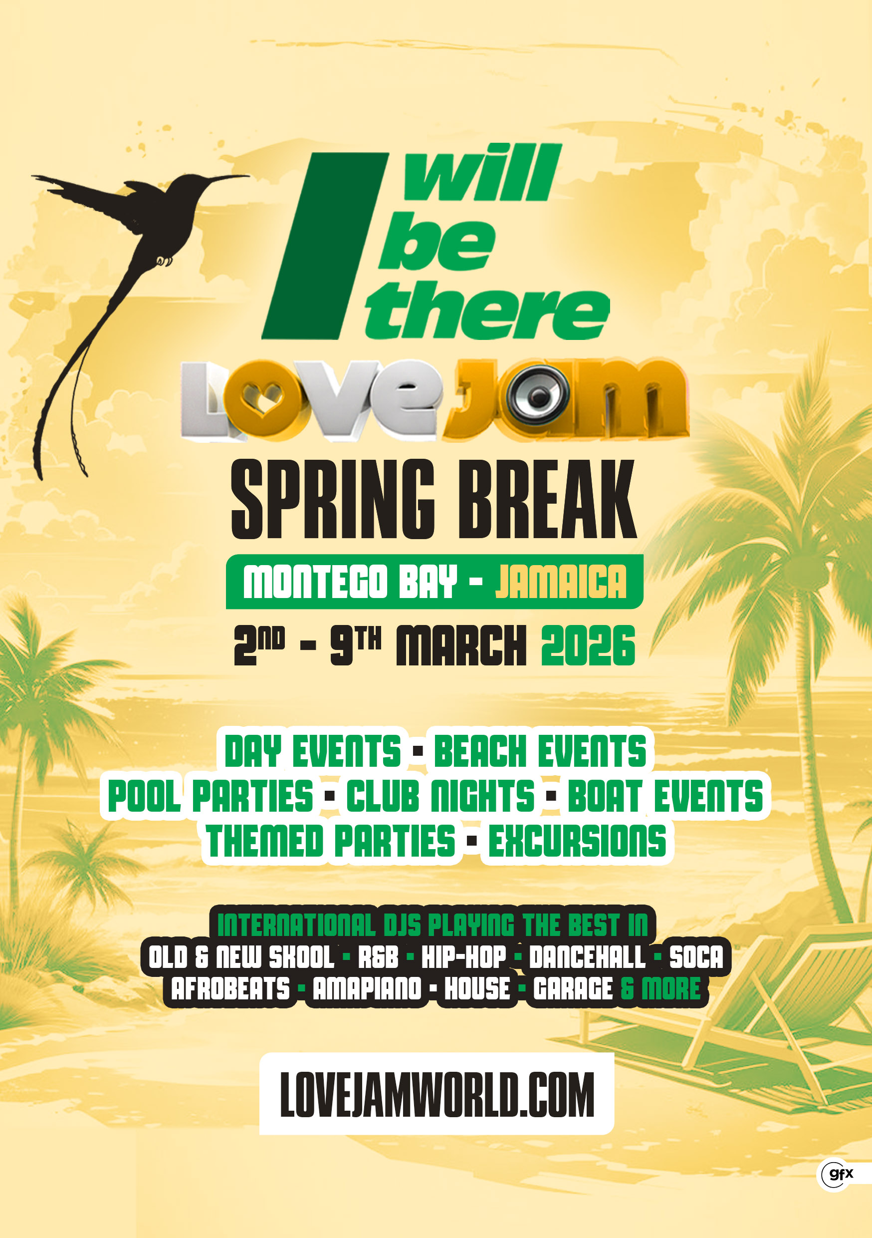 I WILL BE THERE LOVEJAM SPRING BREAK JAMAICA 2025 ☀️ PARTY IN MONTEGO BAYS ICONIC VENUES 🏖️ ENJOY INTIMATE THEMED PARTIES IN SCENIC LOCATIONS 🔊 BRITISH, JAMAICAN AND AMERICAN DJS PLAYING ...
